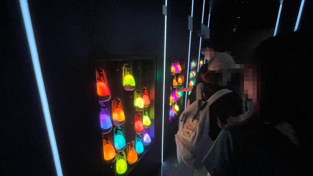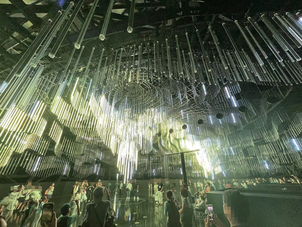 その時間帯のグループがタマゴに集めた電気が集結し、ホール一体に綺麗な光が広がり、見事なショーに。