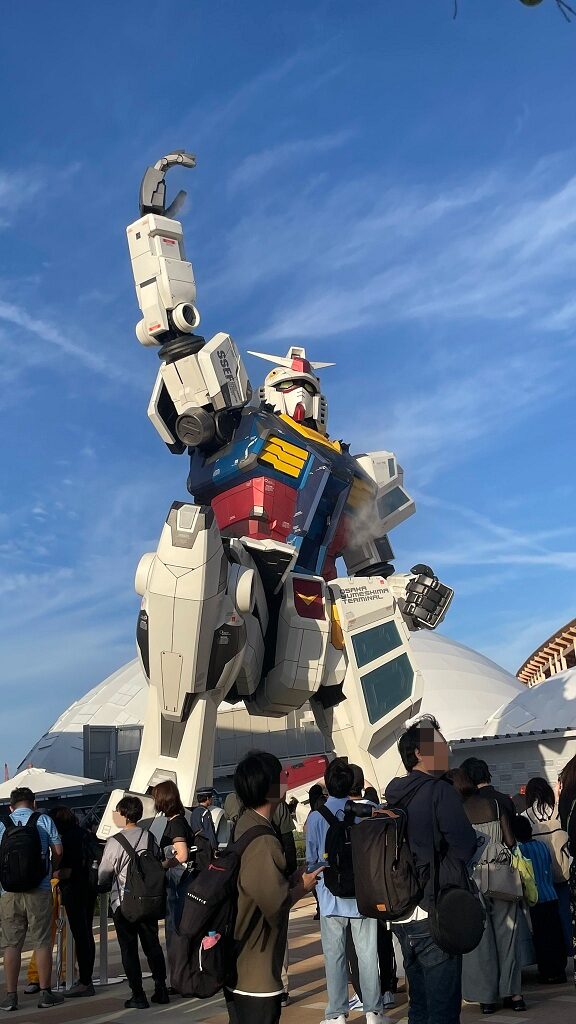 向かう道中で、アゼルバイジャンの見事なパビリオン外観を見たり、噂のキャッチャーみたいな中腰ガンダムを撮ったり。