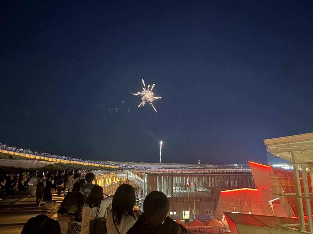 下から大屋根リングと一緒に花火の写真を撮るのも綺麗みたいなので、時間が怪しい場合はそれでも充分に思い出になると思います。