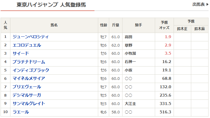日曜日にG1秋華賞とJ・G2東京ハイジャンプ。