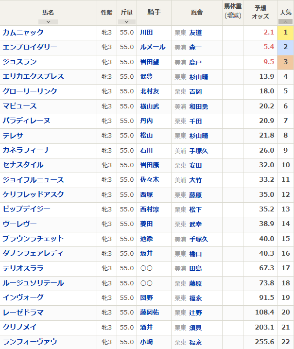 ジャンタルマンタルが強いのは間違いないけれど、2倍台になるくらい人気なのであれば、狙い目は前走だったと思って飛ぶ想定で買いたい。
