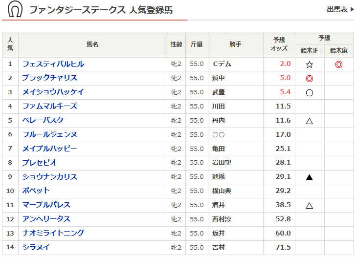 今回も時間的に細かく言及できないので、一覧と予想だけ。