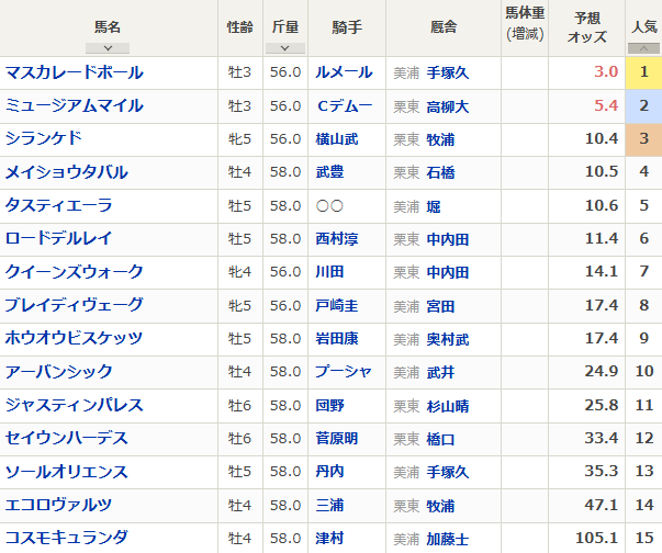 相手としては、昨年2着でレーンが騎乗すると噂のタスティエーラ。