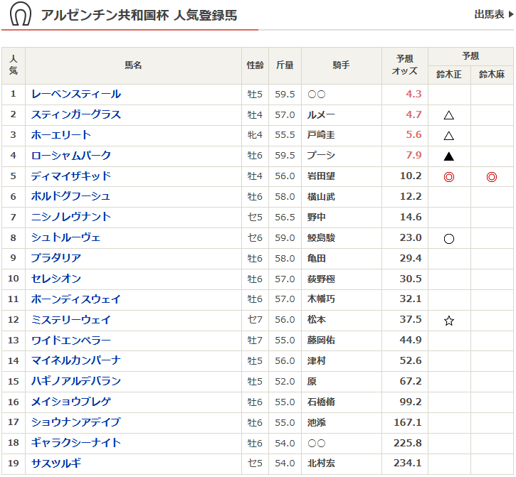 日曜日にG2アルゼンチン共和国杯とG3みやこステークス。