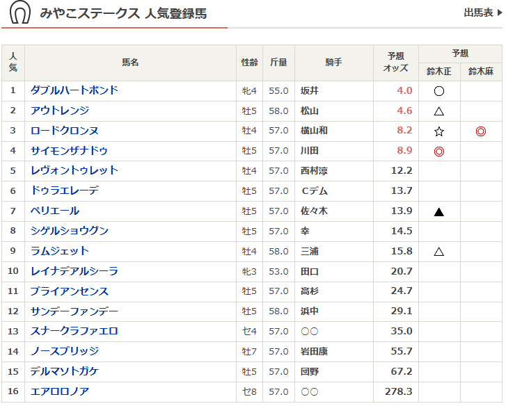 今回も時間的に細かく言及できないので、一覧と予想だけ。