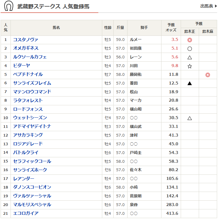 コスタノヴァは斤量負けしてほしいという、ただの願望。