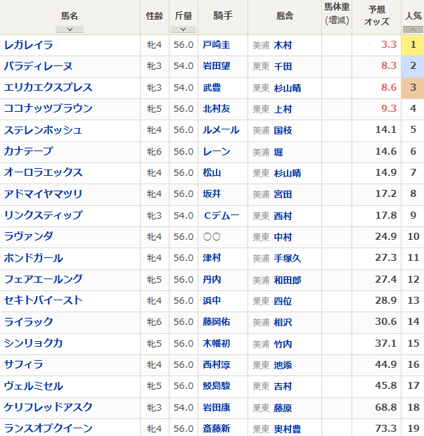 レガレイラは実力的には抜けていると思うけれど、これも馬券的には美味しくないかなぁ。