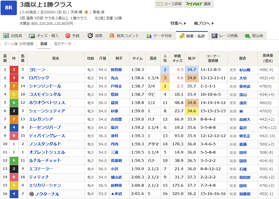 1番人気の馬がつくったハイペースで、それ以外の上位5頭はみんな道中2ケタ番手。