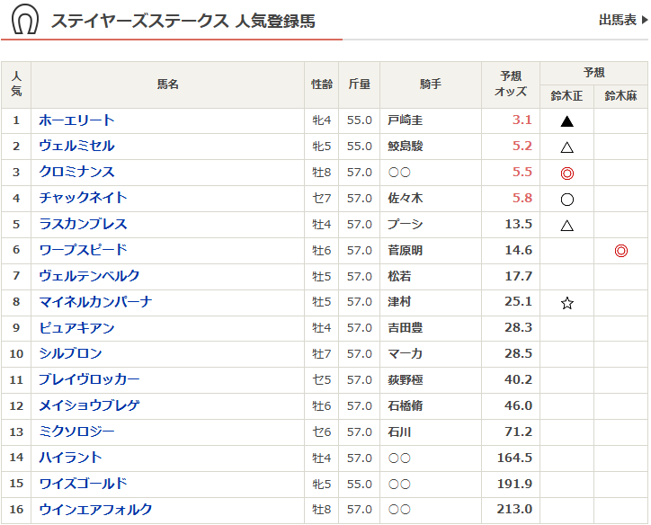 ホーエリートは好きな馬だけれど、長距離でももつのか不安すぎるので軸にはしたくない。