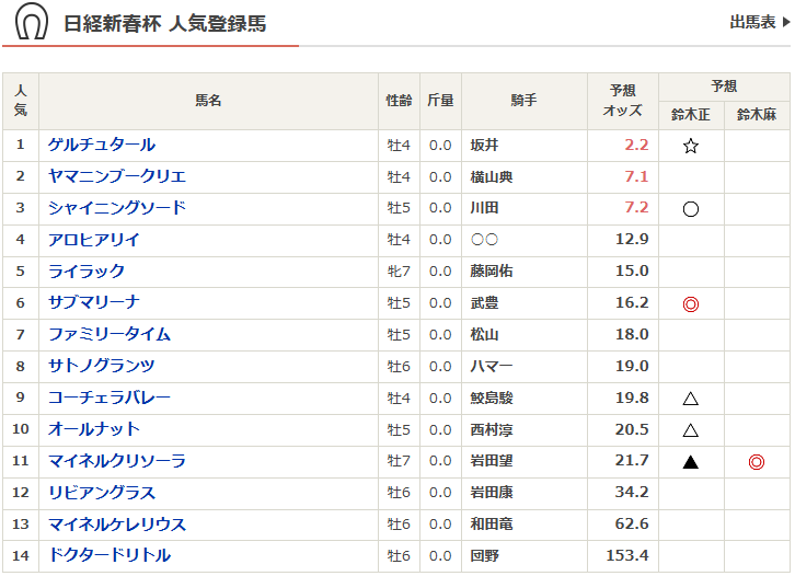 日曜日にG2日経新春杯とG3京成杯。
