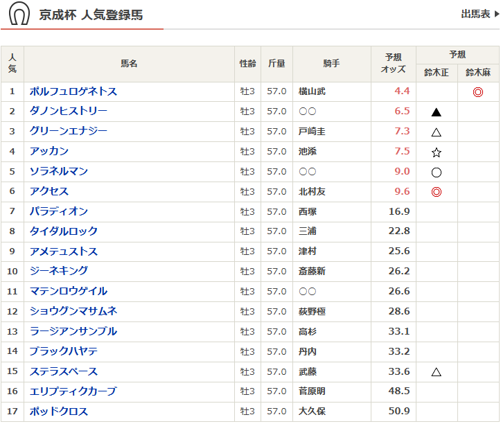 今回も時間的に細かく言及できないので、一覧と予想だけ。