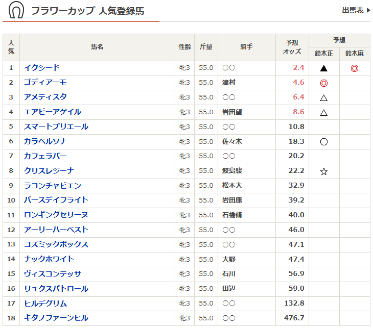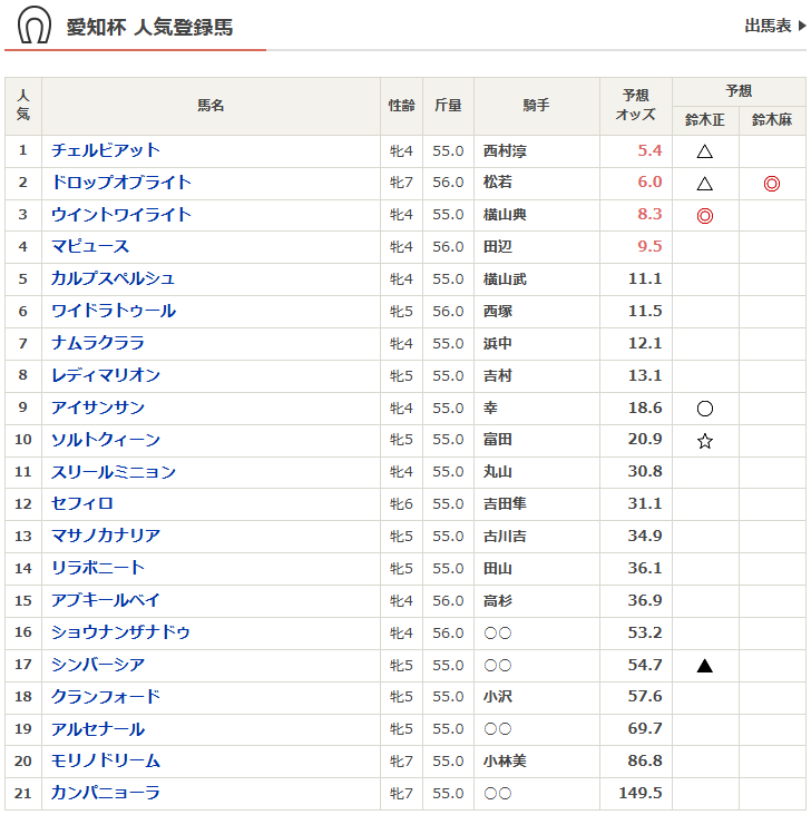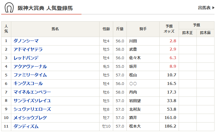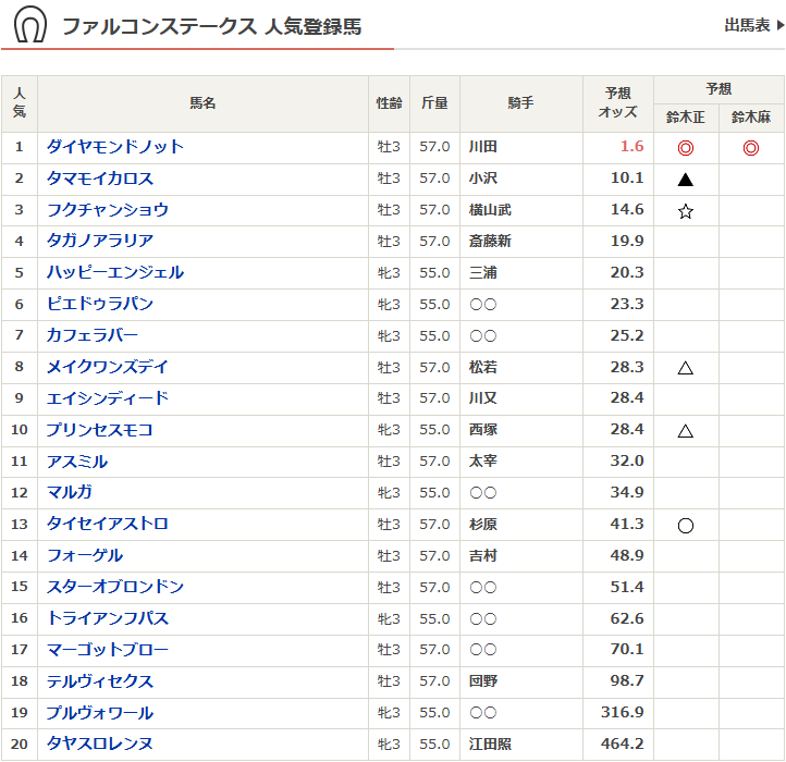 一覧と予想だけ。