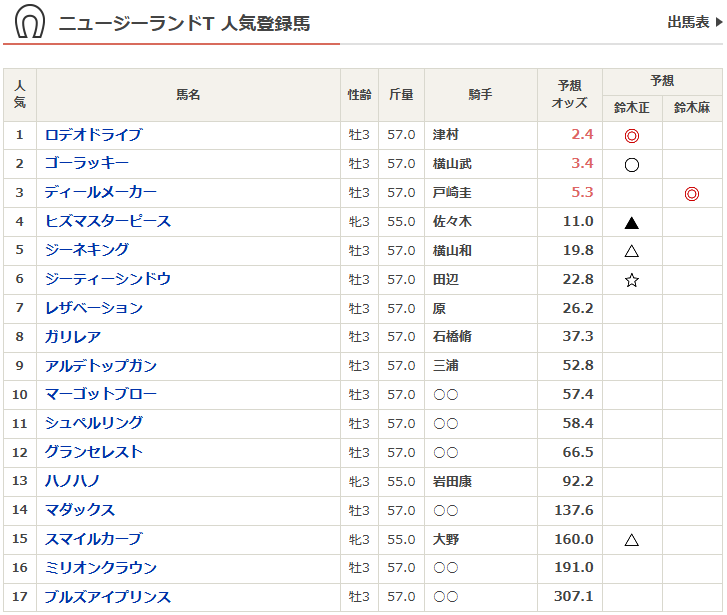 ロデオドライブ…不安要素はほとんどなく、2倍台前半も。