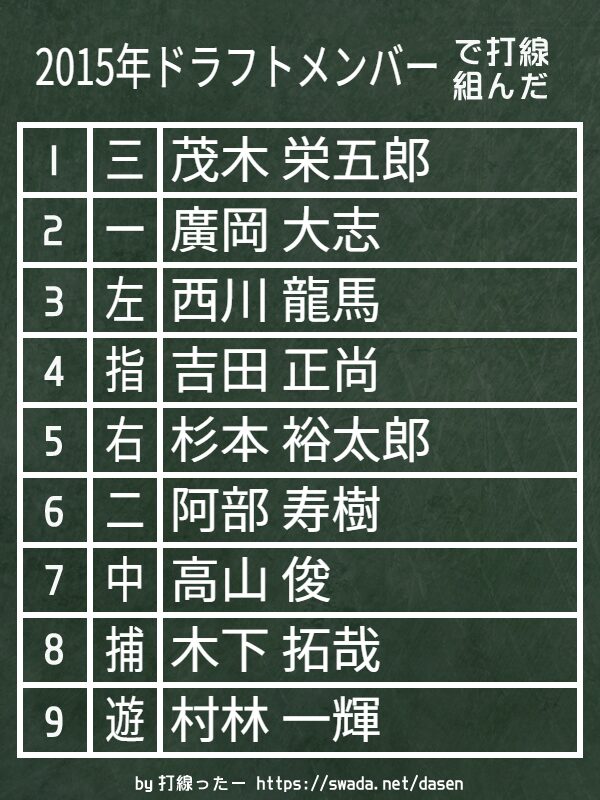 理由は10年経っているので成績がわかりやすいのと、2014年の「即戦力外ドラフト」は思い出したくもないからです。