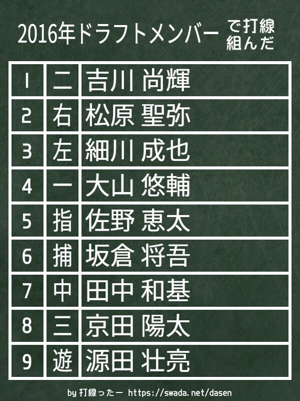 2016年ドラフト選手で打線組んでみた(チームも)